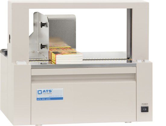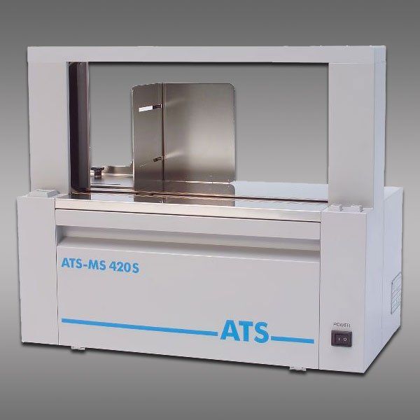 A máquina de cintagem para produtos sensíveis realiza cintagem até o formato A3 (420mm). O modelo de mesa ATS-MS 420S já está pronto para usar e não exige nenhum pré-aquecimento.